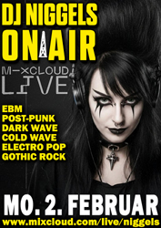 Online-Event! Klassiker, Rares und brandneue Veröffentlichungen aus Gothic, EBM, Post-Punk, Cold Wave, Dark Wave und so weiter. Link: https://www.mixcloud.com/live/Niggels/ (Gratis-Livestream, keine Registrierung fürs Zuhören nötig. Um im Chat mitzumachen braucht man aber einen Mixcloud-Account, der aber kostenlos und schnell erstellt ist.) Facebook-Event: n/a Wer Trinkgeld für den DJ spendieren möchte, kann dies per Paypal an die Adresse trinkgeld@monasteria.net tun. | |